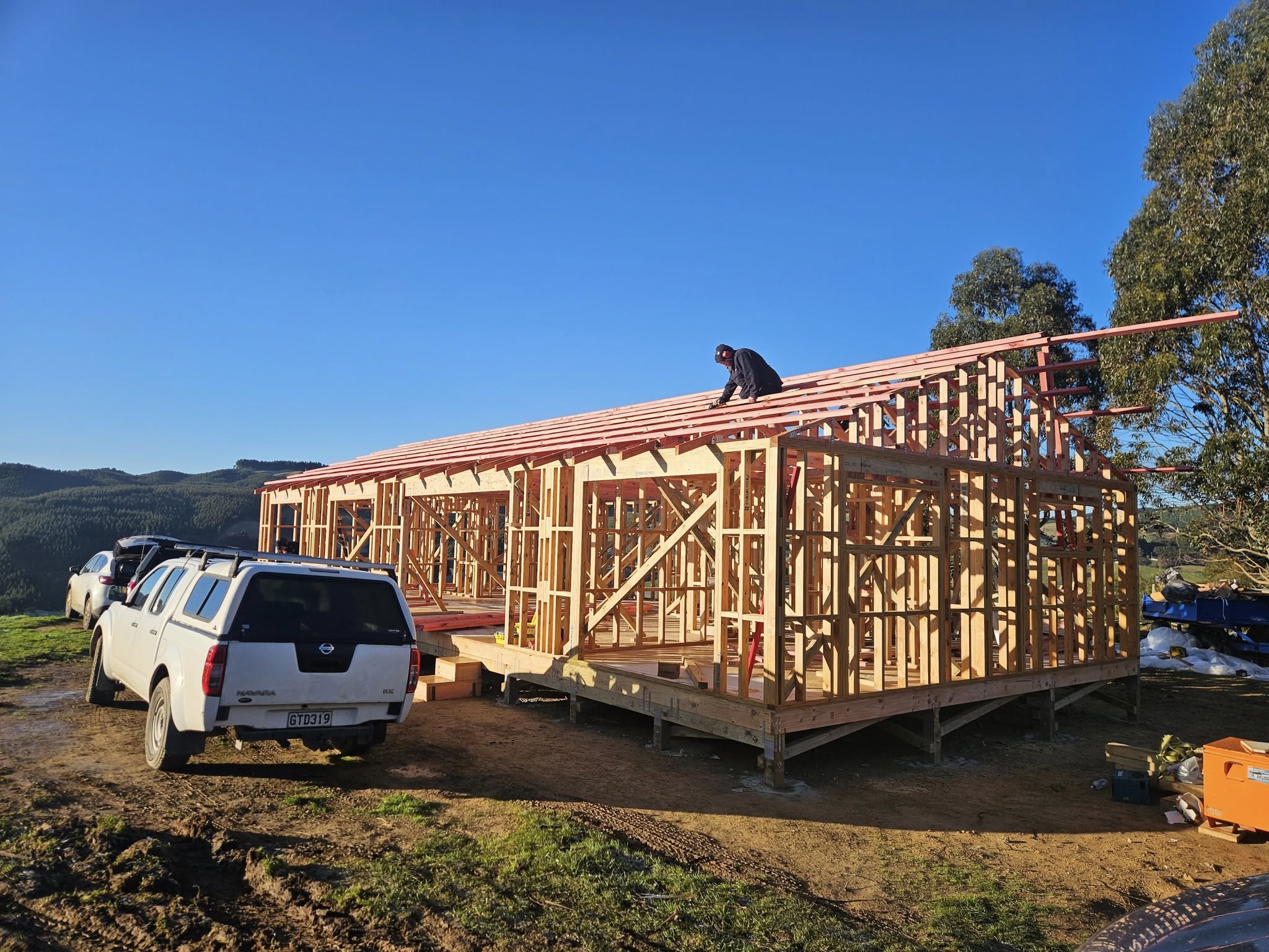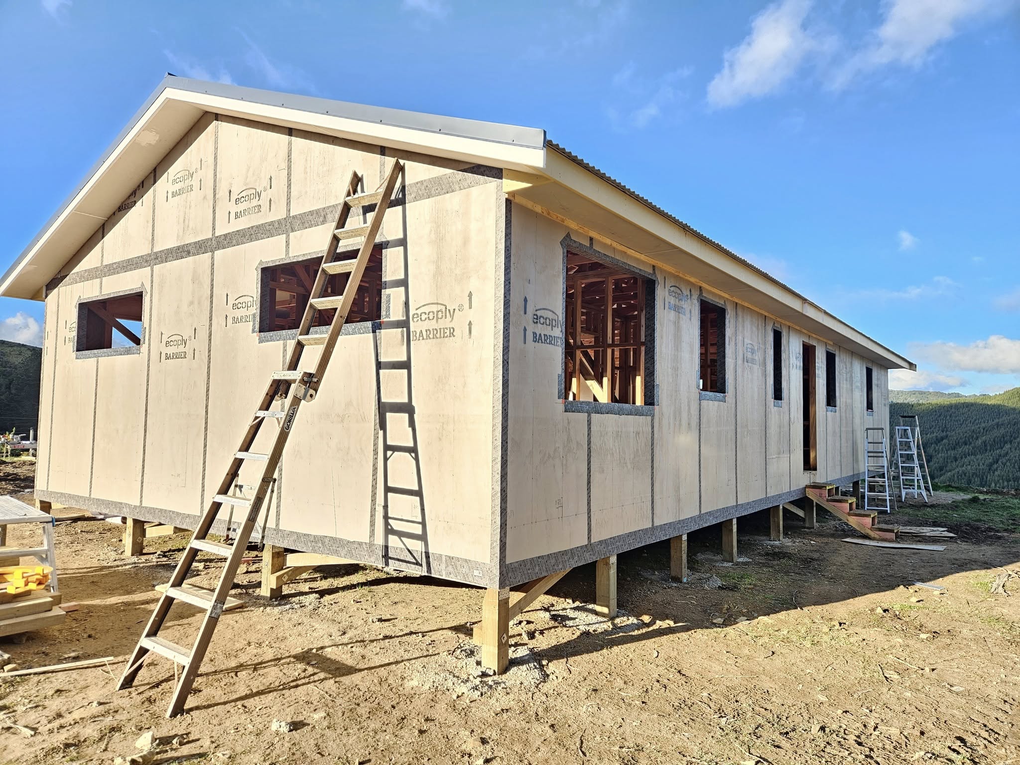Our clients have wanted a three bedroom build that was completely off the grid. This included starlink, solar power, and rain water systems. This build was very remote and was four-wheel drive only meaning all building materials had to be brought on a trailer. This home is fully off grid on a back country block.
